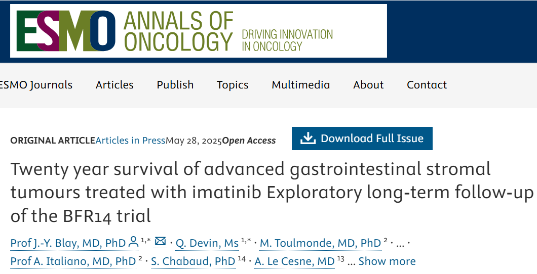 BFR14研究的更新为伊马替尼上市后最初几年接受治疗的晚期胃肠道间质瘤患者的长期疗效提供了重要见解。主要研究者、法国里昂的里昂贝拉德中心、克劳德伯纳德里昂第一大学和里昂癌症研究中心的医学博士Jean-Yves Blay及其同事在论文中表示:“一部分患者在20年内仍然存活,且没有疾病进展。在通过药物治疗和手术达到完全缓解(CR)的患者中,这一比例更高。要确定这些患者是否已经治愈,需要更长时间的随访。”