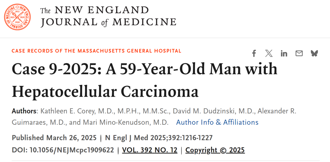 参考文献:Corey KE, Dudzinski DM, Guimaraes AR, Mino-Kenudson M. Case 9-2025: A 59-Year-Old Man with Hepatocellular Carcinoma. N Engl J Med. 2025 Mar 27;392(12):1216-1227. doi: 10.1056/NEJMcpc1909622. PMID: 40138556.