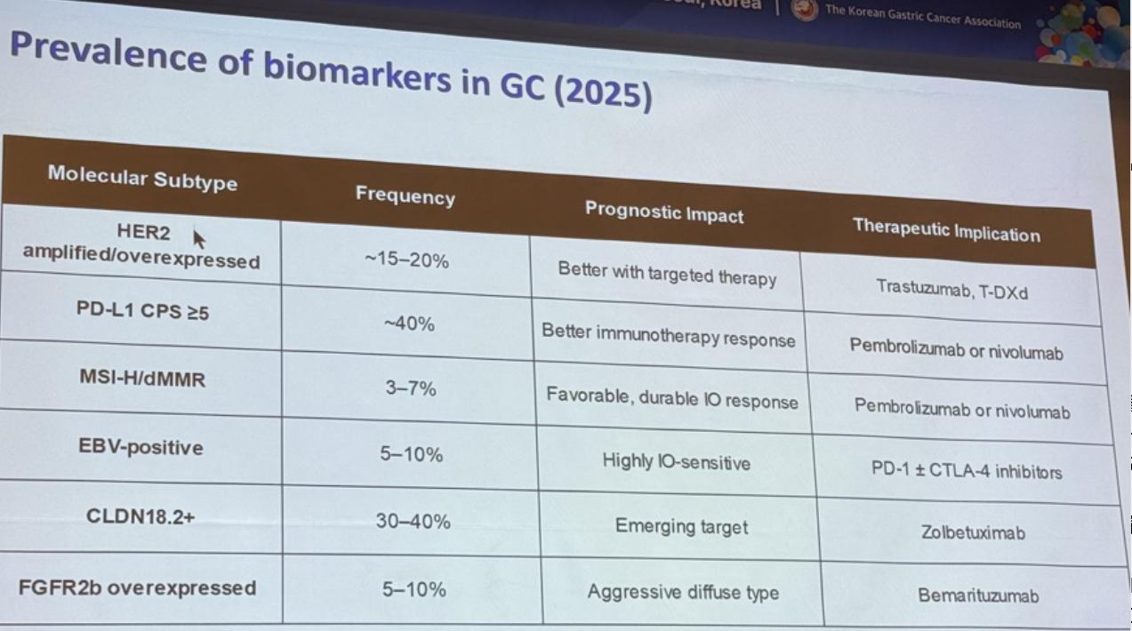 编者按 胃癌作为全球高发且难治性的恶性肿瘤之一,其治疗面临巨大挑战。近年来,随着对肿瘤微环境、免疫应答机制及分子分型的深入理解,基于生物标志物的精准医疗成为改善患者预后的关键方向。韩国成均馆大学医学院的Jeeyun Lee教授在韩国国际胃癌周(KINGCA WEEK 2025)上发表了最新研究成果,系统综述了多组学技术在解析胃癌异质性、预测免疫检查点抑制剂(ICB)疗效以及开发新型联合疗法方面的突破性进展,重点讨论了肿瘤突变负荷(TMB)、微卫星不稳定性(MSI)、Claudin18.2表达等关键生物标志物的临床价值,并分析了T细胞受体(TCR)克隆动态、空间转录组学和蛋白质组学如何揭示免疫逃逸机制。