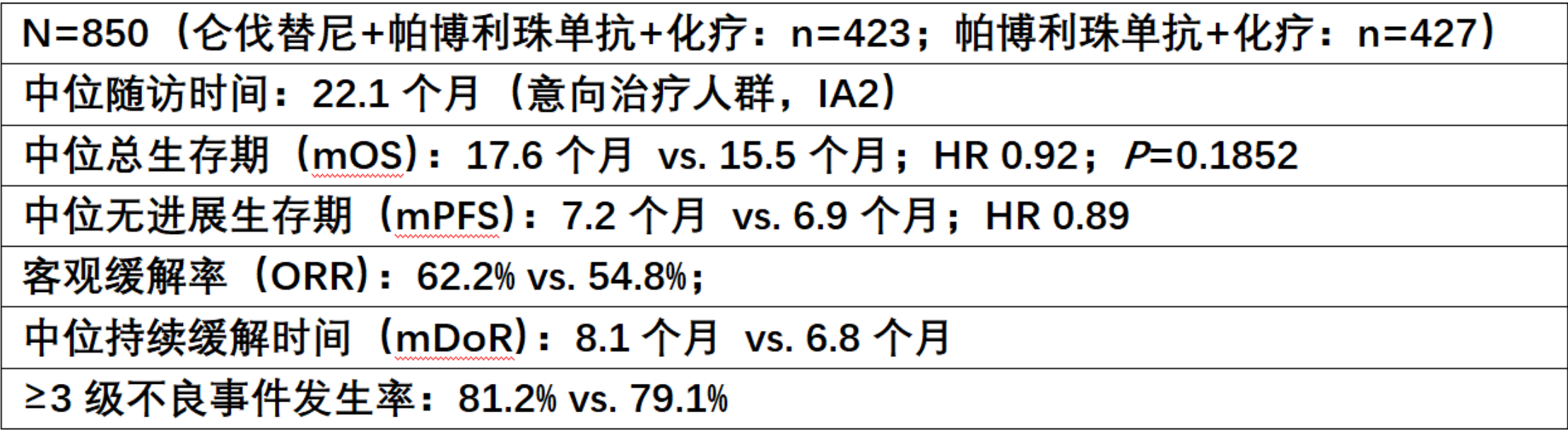 LEAP-014研究:PD-1+TKI+化疗一线治疗食管癌无效