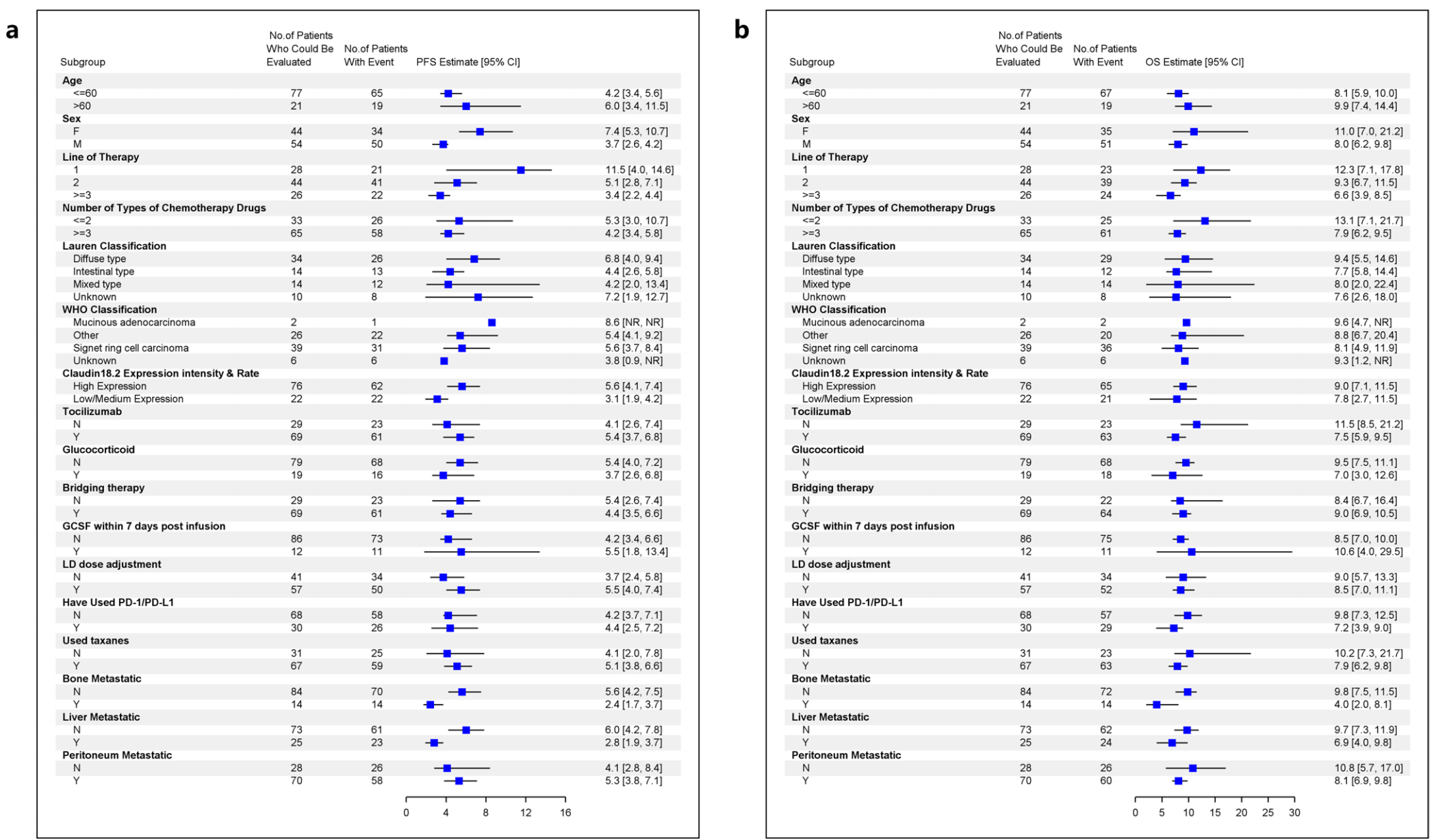 所有亚组均受益CT041的PFS和OS获益体现在所有亚组,包括胃食管结合部癌、Claudin18.2中表达、腹膜转移等亚组[10,11](图1);